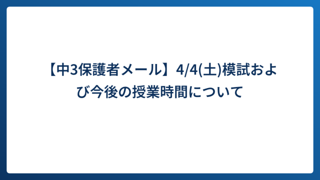 【中3保護者メール】4月模試の成績表返却および今後の模試予定について|15名が自己最高偏差値達成!