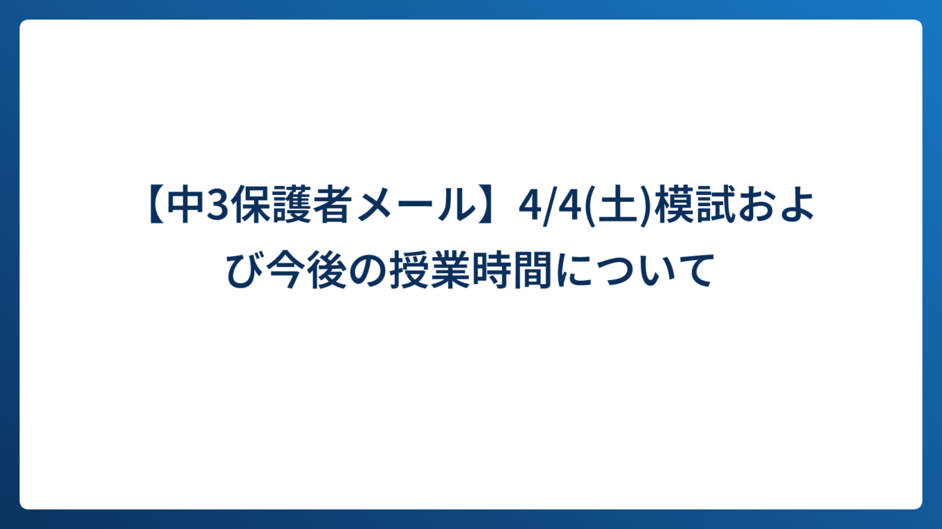 【中3保護者メール】4/4(土)模試および今後の授業時間について