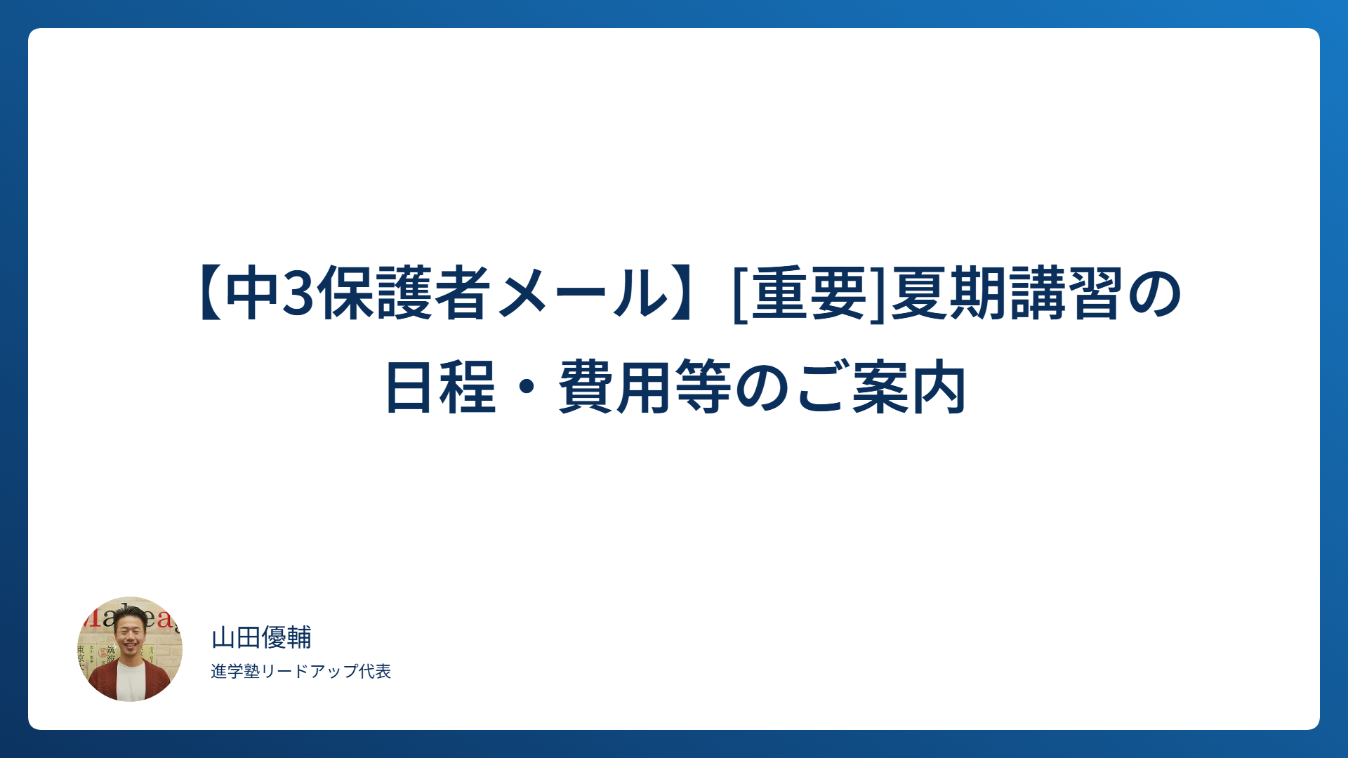 【中3保護者メール】[重要]夏期講習の日程・費用等のご案内