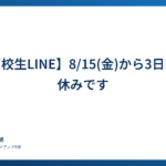 【高校生LINE】8/15(金)から3日間お休みです