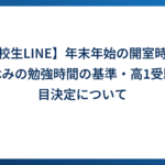 2025.12.25 高校生 【高校生LINE】年末年始の開室時間・冬休みの勉強時間の基準・高1受験科目決定について Yamada Yusuke この情報へのアクセスはメンバーに限定されています。ログインしてください。メンバー登録は下記リンクをクリックしてください。既存ユーザのログインユーザー名またはメールアドレスパスワード ログイン状態を保存する パスワードを忘れた場合 パスワードリセットはじめての方はこちら 新規ユーザー登録 ABOUT ME 山田優輔進学塾リードアップ代表XFacebookInstagramLINE真砂生まれ・真砂育ち。稲毛高校出身。 高校では県3位のラグビー部主将を務めながら学年トップの成績を維持。指定校推薦で中央大学理工学部に進学。 大学でもGPA3.0越えで大学院への推薦を取得(GPA=大学の成績)。 主に「中3生(高校受験)」「高校生(理系)の大学受験」を担当。