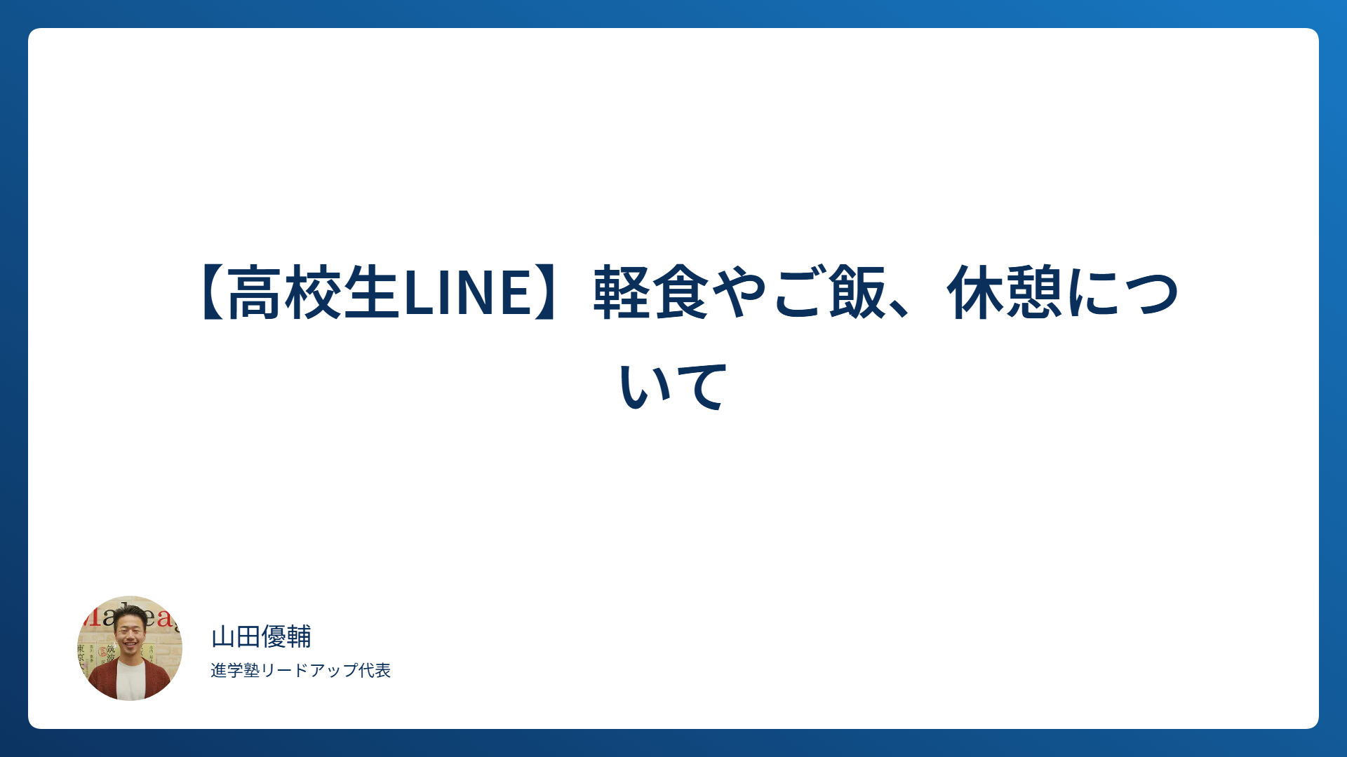 2025.07.28 高校生 【高校生LINE】軽食やご飯、休憩について Yamada Yusuke この情報へのアクセスはメンバーに限定されています。ログインしてください。メンバー登録は下記リンクをクリックしてください。既存ユーザのログインユーザー名またはメールアドレスパスワード ログイン状態を保存する パスワードを忘れた場合 パスワードリセットはじめての方はこちら 新規ユーザー登録 ABOUT ME 山田優輔進学塾リードアップ代表XFacebookInstagramLINE真砂生まれ・真砂育ち。稲毛高校出身。 高校では県3位のラグビー部主将を務めながら学年トップの成績を維持。指定校推薦で中央大学理工学部に進学。 大学でもGPA3.0越えで大学院への推薦を取得(GPA=大学の成績)。 主に「中3生(高校受験)」「高校生(理系)の大学受験」を担当。
