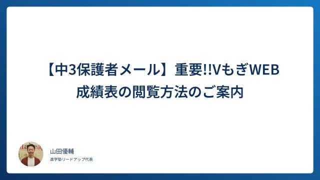 【中3保護者メール】重要!!12月「県立そっくりVもぎ」から「私立Vもぎ」への変更について(2025年度) 2025.10.20 中3保護者メール Yamada Yusuke 進学塾リードアップ塾生専用サイト