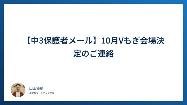 【中3保護者メール】重要!!12月「県立そっくりVもぎ」から「私立Vもぎ」への変更について(2025年度) 2025.10.20 中3保護者メール Yamada Yusuke 進学塾リードアップ塾生専用サイト