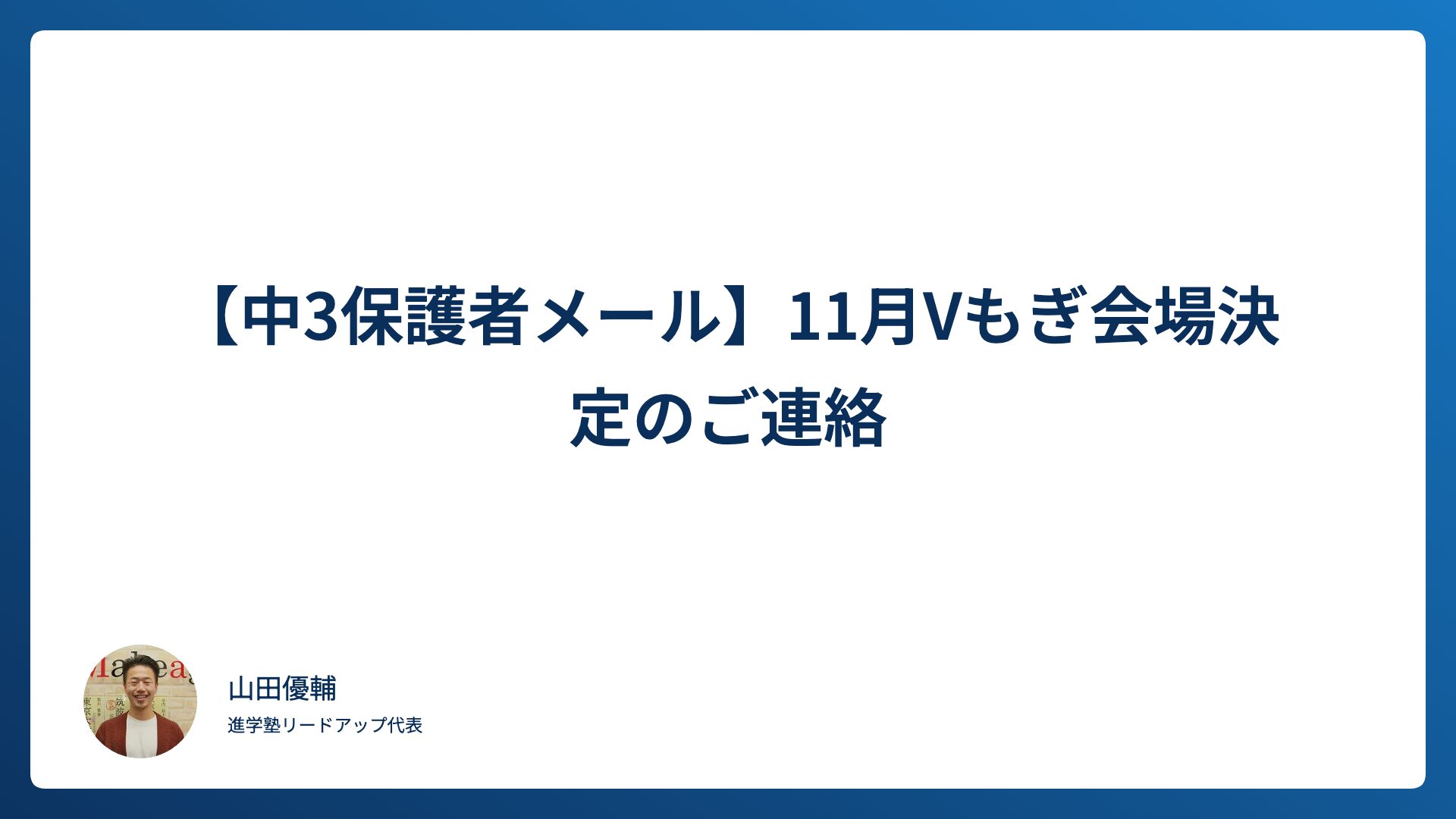 2025.11.08 中3保護者メール 【中3保護者メール】11月Vもぎ会場決定のご連絡 Yamada Yusuke この情報へのアクセスはメンバーに限定されています。ログインしてください。メンバー登録は下記リンクをクリックしてください。既存ユーザのログインユーザー名またはメールアドレスパスワード ログイン状態を保存する パスワードを忘れた場合 パスワードリセットはじめての方はこちら 新規ユーザー登録 #Vもぎ ABOUT ME 山田優輔進学塾リードアップ代表XFacebookInstagramLINE真砂生まれ・真砂育ち。稲毛高校出身。 高校では県3位のラグビー部主将を務めながら学年トップの成績を維持。指定校推薦で中央大学理工学部に進学。 大学でもGPA3.0越えで大学院への推薦を取得(GPA=大学の成績)。 主に「中3生(高校受験)」「高校生(理系)の大学受験」を担当。