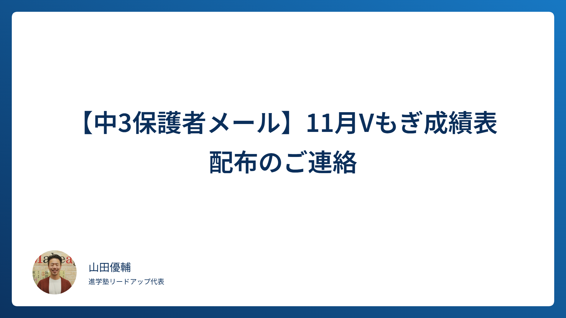 2025.11.22 中3保護者メール 【中3保護者メール】11月Vもぎ成績表配布のご連絡 Yamada Yusuke この情報へのアクセスはメンバーに限定されています。ログインしてください。メンバー登録は下記リンクをクリックしてください。既存ユーザのログインユーザー名またはメールアドレスパスワード ログイン状態を保存する パスワードを忘れた場合 パスワードリセットはじめての方はこちら 新規ユーザー登録 ABOUT ME 山田優輔進学塾リードアップ代表XFacebookInstagramLINE真砂生まれ・真砂育ち。稲毛高校出身。 高校では県3位のラグビー部主将を務めながら学年トップの成績を維持。指定校推薦で中央大学理工学部に進学。 大学でもGPA3.0越えで大学院への推薦を取得(GPA=大学の成績)。 主に「中3生(高校受験)」「高校生(理系)の大学受験」を担当。