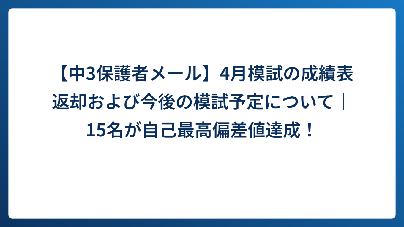 2026.04.18 中3保護者メール 【中3保護者メール】4月模試の成績表返却および今後の模試予定について|15名が自己最高偏差値達成! Yamada Yusuke この情報へのアクセスはメンバーに限定されています。ログインしてください。メンバー登録は下記リンクをクリックしてください。既存ユーザのログインユーザー名またはメールアドレスパスワード ログイン状態を保存する パスワードを忘れた場合 パスワードリセットはじめての方はこちら 新規ユーザー登録 ABOUT ME 山田優輔進学塾リードアップ代表XFacebookInstagramLINE真砂生まれ・真砂育ち。稲毛高校出身。 高校では県3位のラグビー部主将を務めながら学年トップの成績を維持。指定校推薦で中央大学理工学部に進学。 大学でもGPA3.0越えで大学院への推薦を取得(GPA=大学の成績)。 主に「中3生(高校受験)」「高校生(理系)の大学受験」を担当。